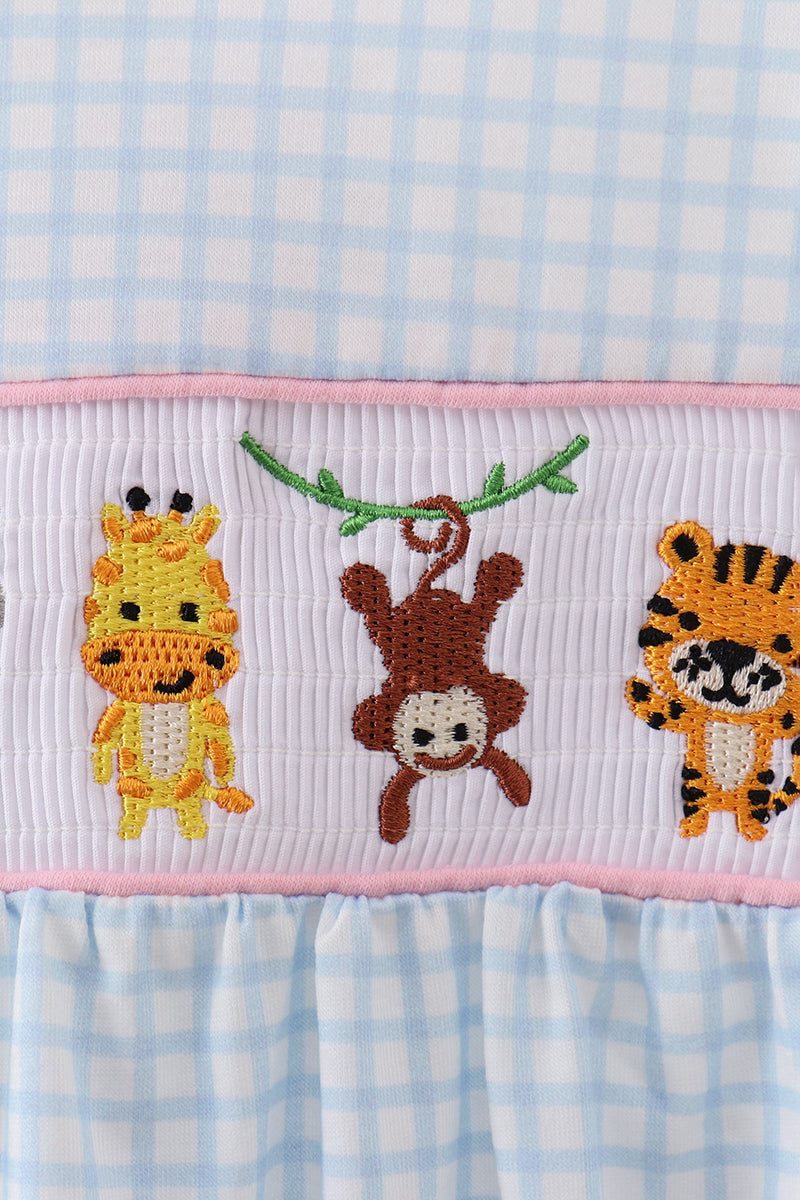 Blue animal smocked ruffle romper