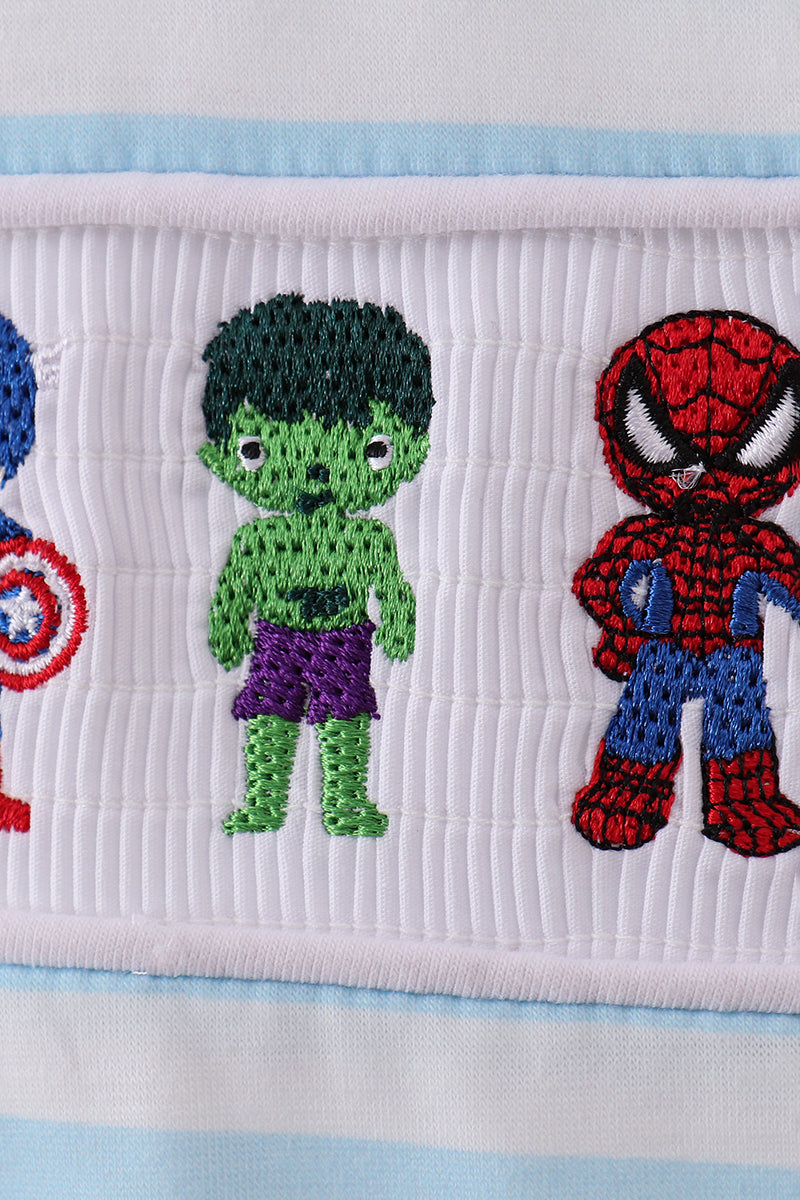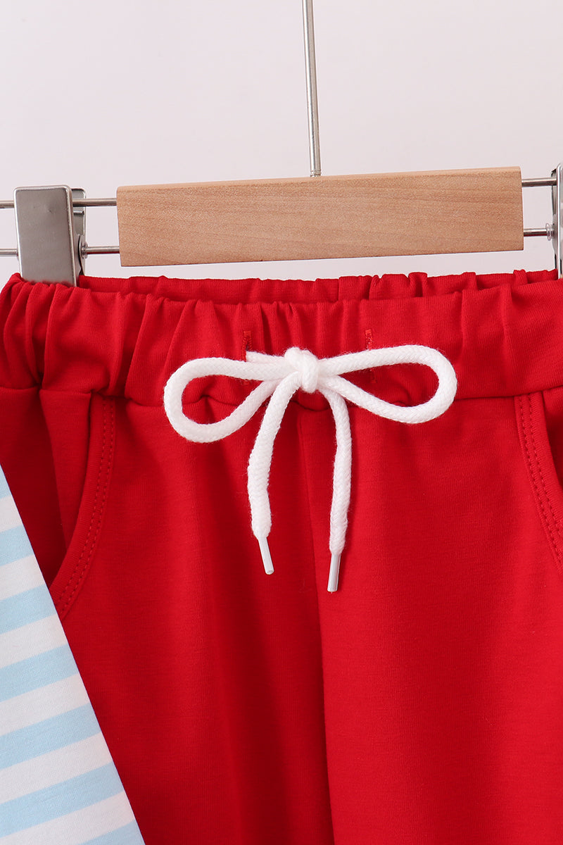 This playful blue set features cozy pants adorned with charming character embroidery and vibrant stripes, perfect for adding a fun twist to everyday comfort. Ideal for lounging or casual outings, it brings a splash of whimsy to your wardrobe while keeping you comfy all day long.