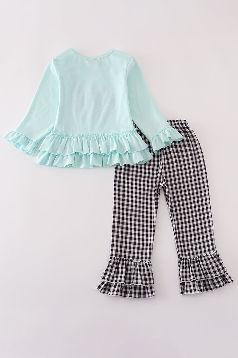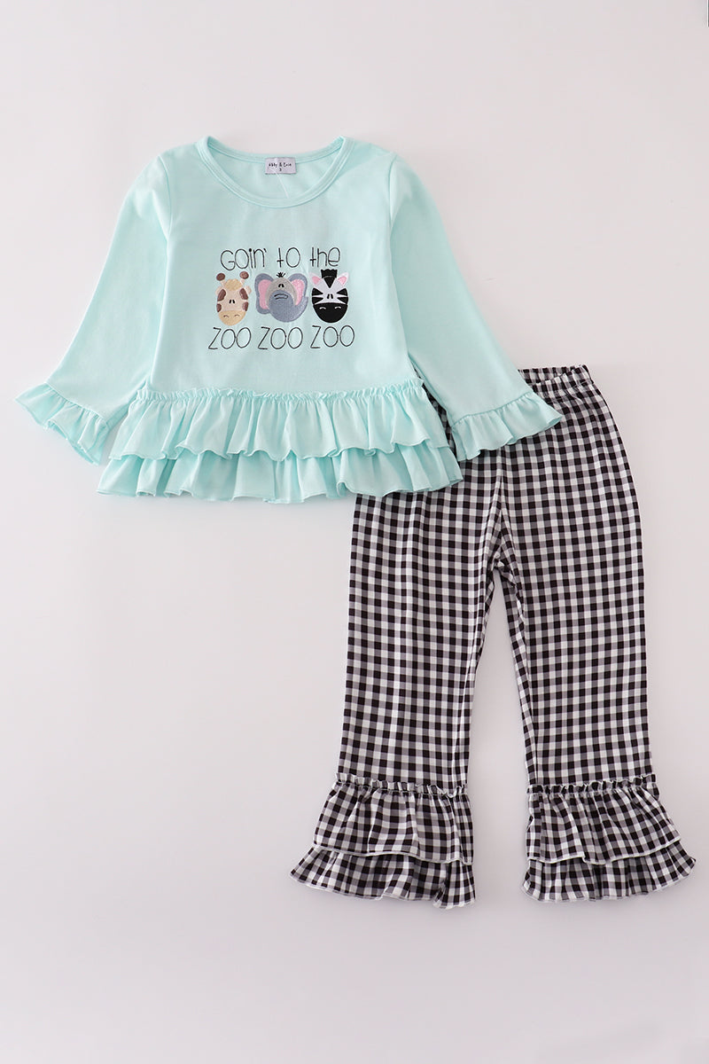 Blue GOIN TO THE ZOO embroidery ruffle pants set