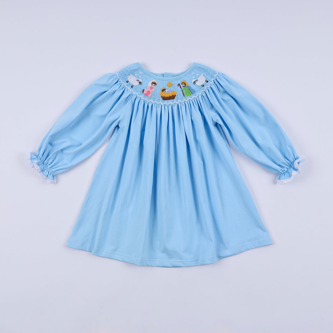 Blue nativity hand smocked dress