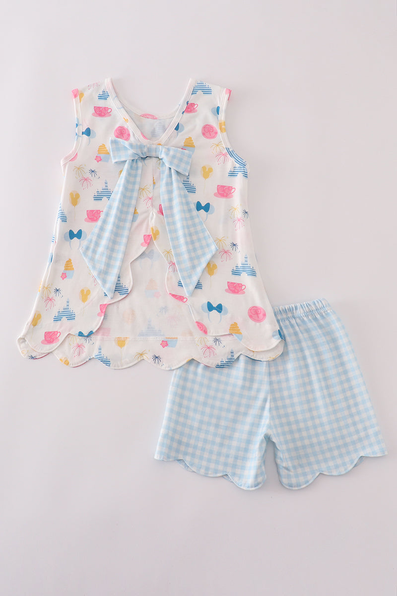 Spark magical adventures with our Fireworks Castle Print Shorts Set! These whimsical bottoms feature enchanting castle silhouettes illuminated by colorful firework bursts. Perfect for playdates, summer outings, or simply adding a touch of wonder to everyday wear. The comfortable fit ensures your little one can play, explore, and dream in style!