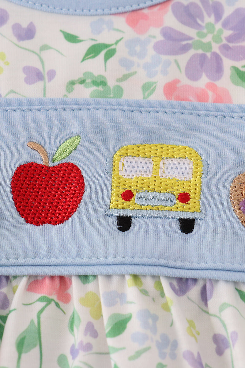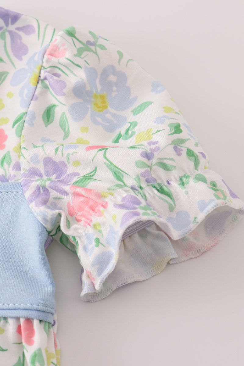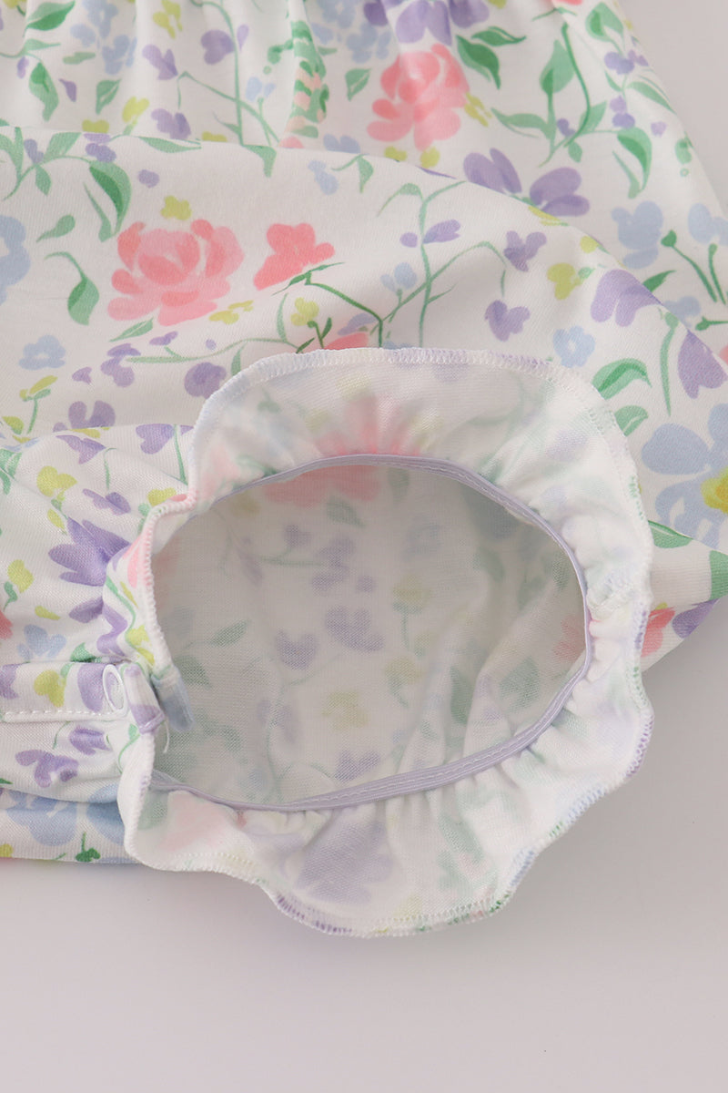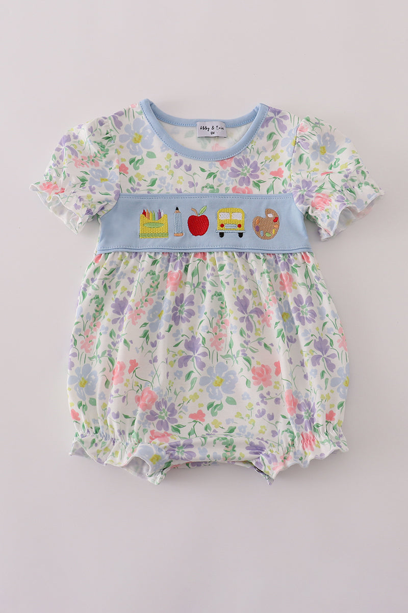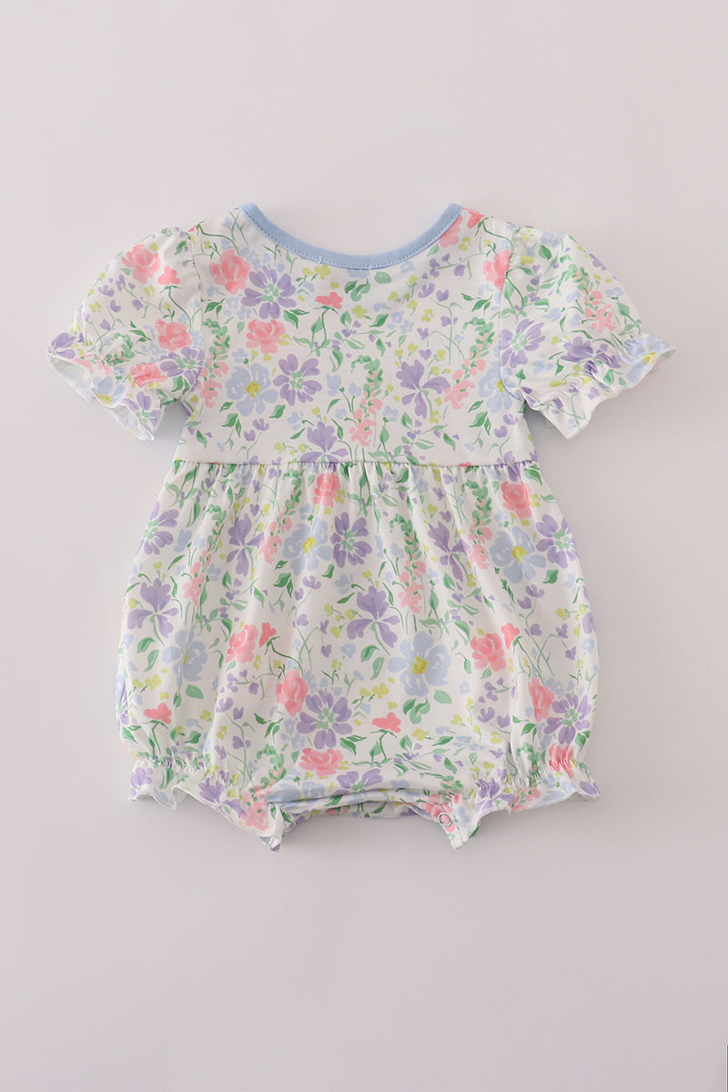 Wrap your little one in whimsy with this delightful floral print bubble featuring charming crayon apple embroidery! Perfect for playdates, photo ops, or just bouncing around the house, this playful outfit combines comfort with adorable style. Watch as your tiny trendsetter turns heads and collects compliments in this sweet, garden-inspired ensemble!