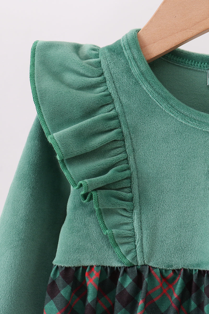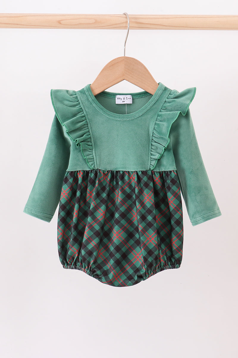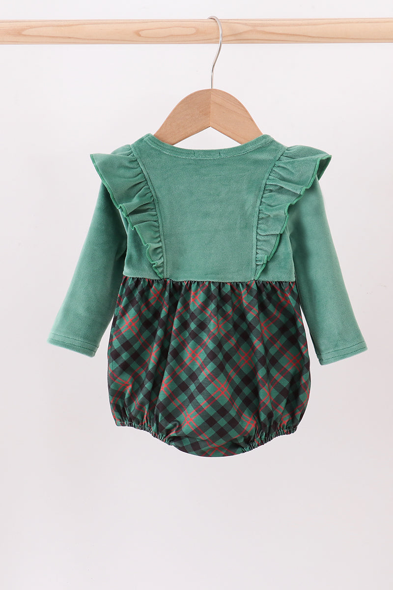 Add a touch of whimsy with the Forest Velvet Ruffle Bubble. Soft velvet wraps your little one in cozy comfort, while charming ruffles and a playful bubble silhouette create an enchanting look perfect for any special occasion or everyday fun. Easy to wear and delightfully stylish, it’s a sweet way to brighten up their wardrobe.