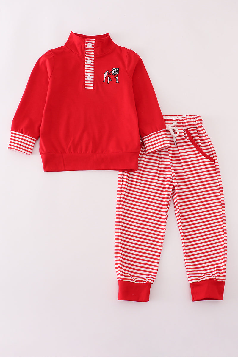 Step into fun and flair with the Georgia embroidery stripe pants set! This playful duo combines comfy pants with charming embroidered stripes, adding a splash of personality to your everyday look. Perfect for lounging or casual outings, it brings a cheerful vibe to your wardrobe while keeping you cozy and stylish.