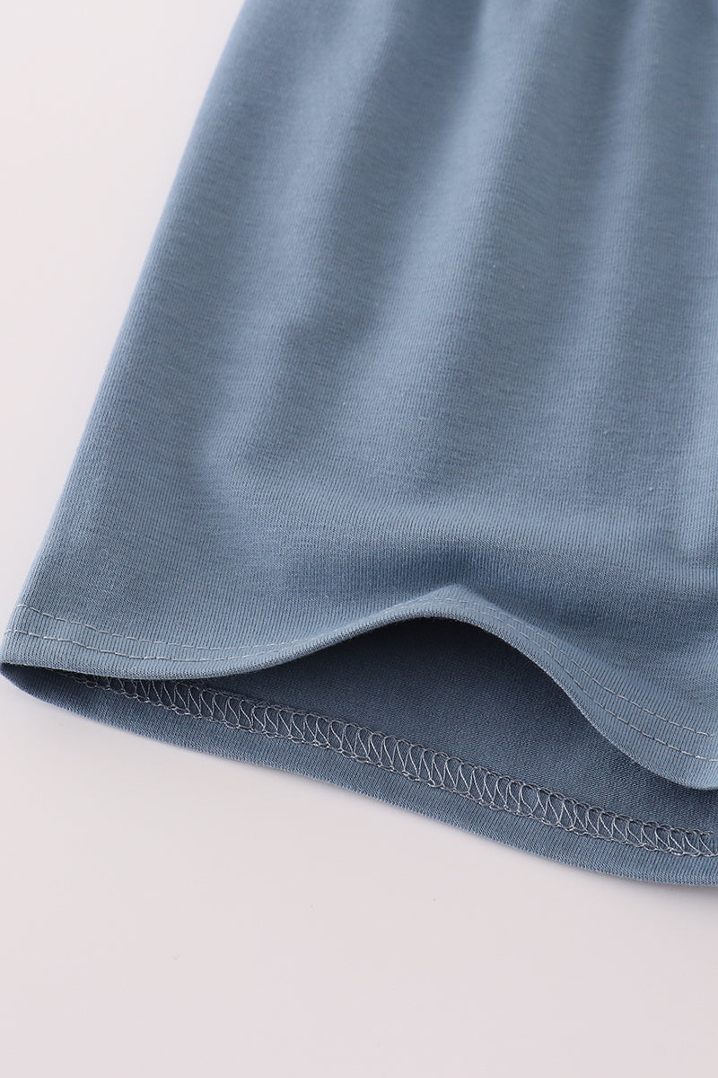 Green character applique shorts set
