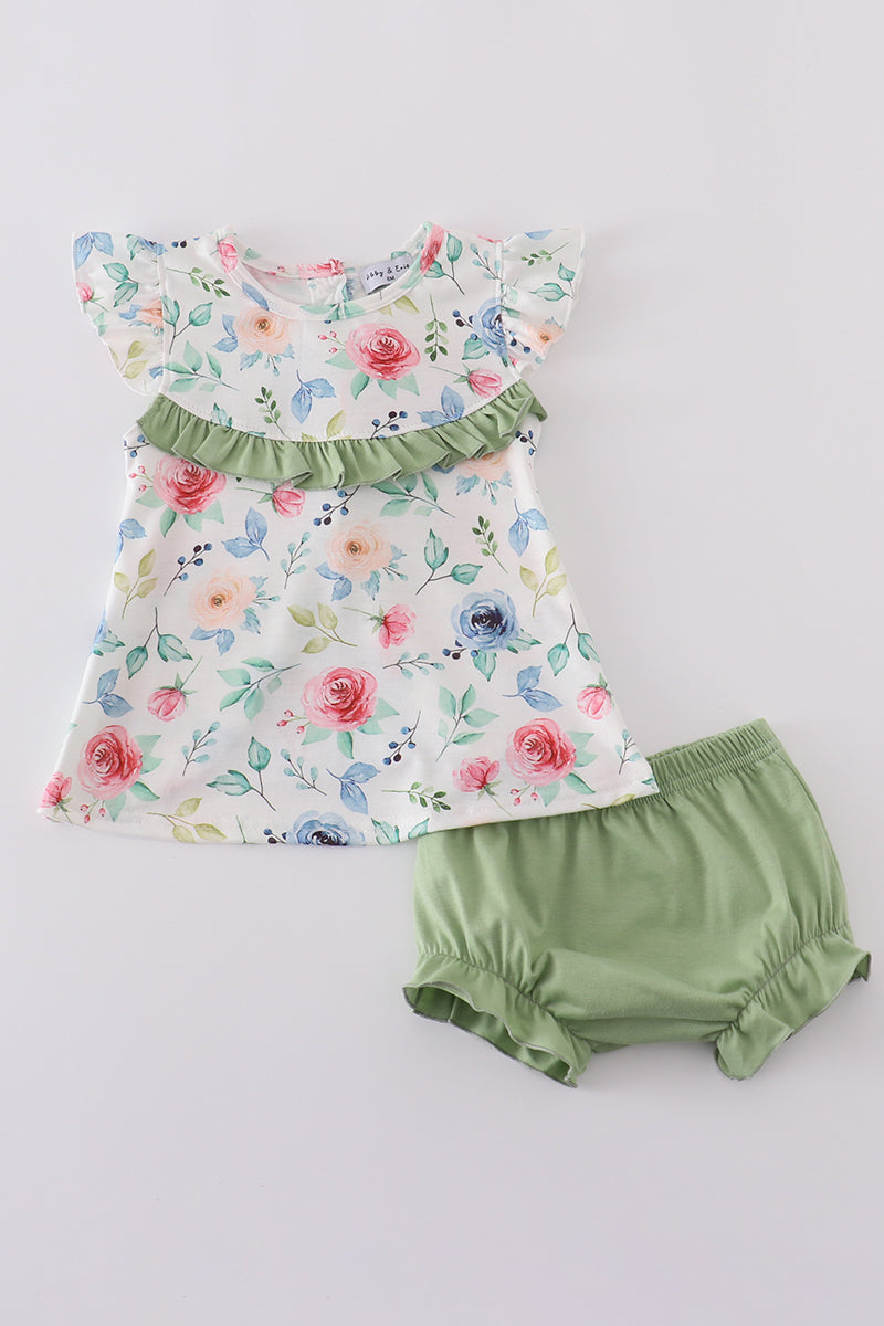 Get ready to bloom in style with our Green Garden Rose Bloomer Set! These adorable bloomers feature a charming green garden rose pattern, perfect for any little fashionista. Stay comfortable and cute in this quirky set, designed for all-day play and fun. (Featuring a playful garden of green and stylish rose accents!)