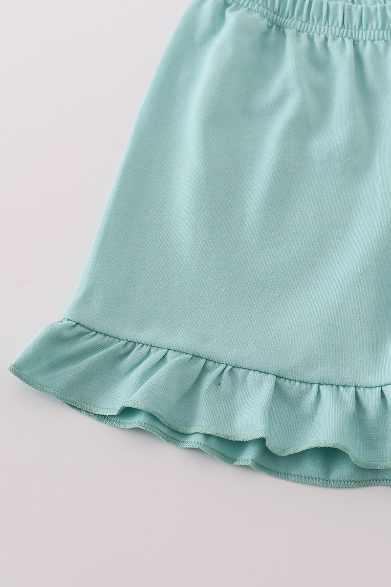 Green stripe puppy hunting embroidery shorts set