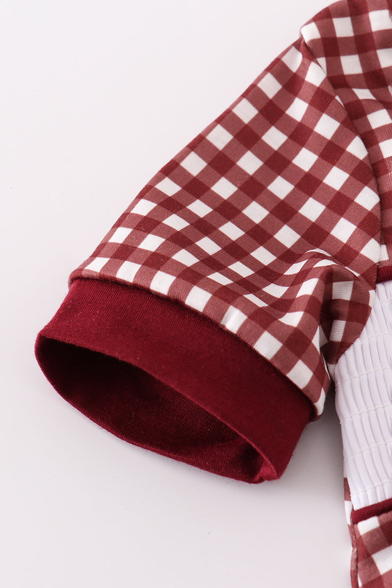 Get ready to show off your Mississippi pride with this adorable MSU embroidery smocked gingham bubble! Perfect for game days or just lounging around, this bubble features a playful smocked design, trendy gingham print, and detailed Mississippi MSU embroidery. Go Bulldogs!