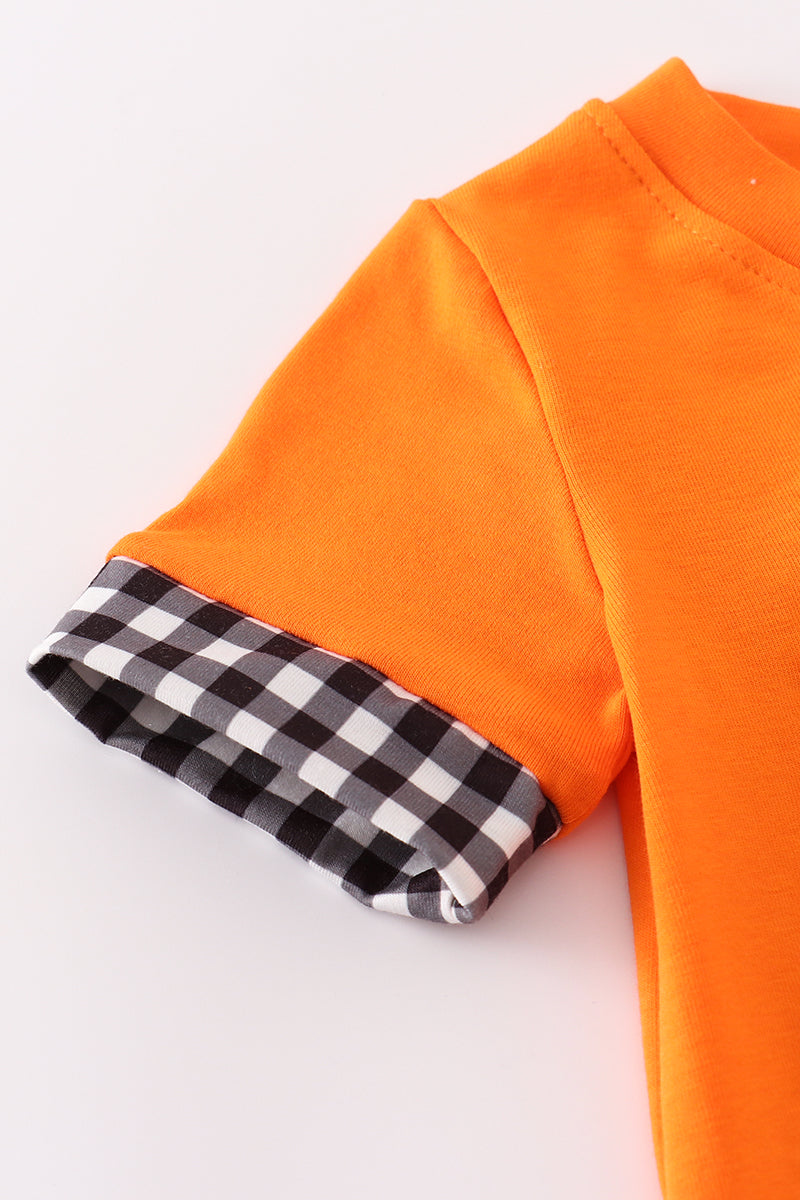 This adorable orange romper features a charming Halloween character design with playful French knot detailing. Perfect for festive fun, it combines comfort and cuteness to keep your little one cozy while celebrating the spooky season in style.