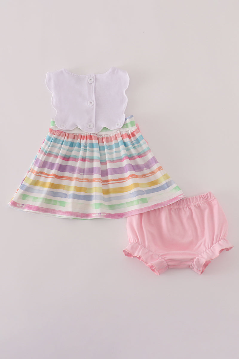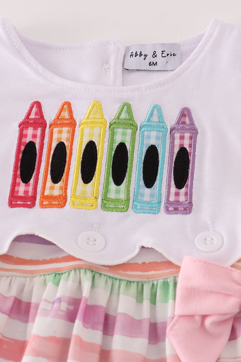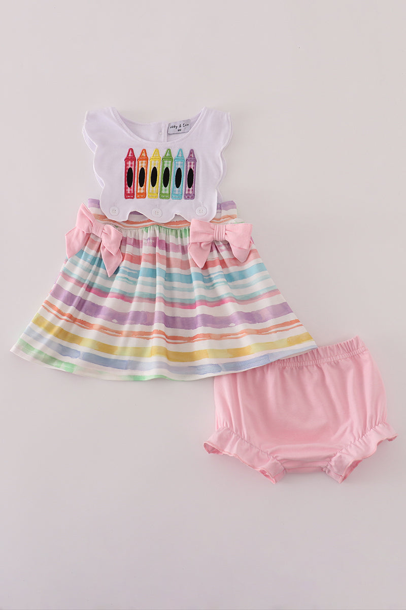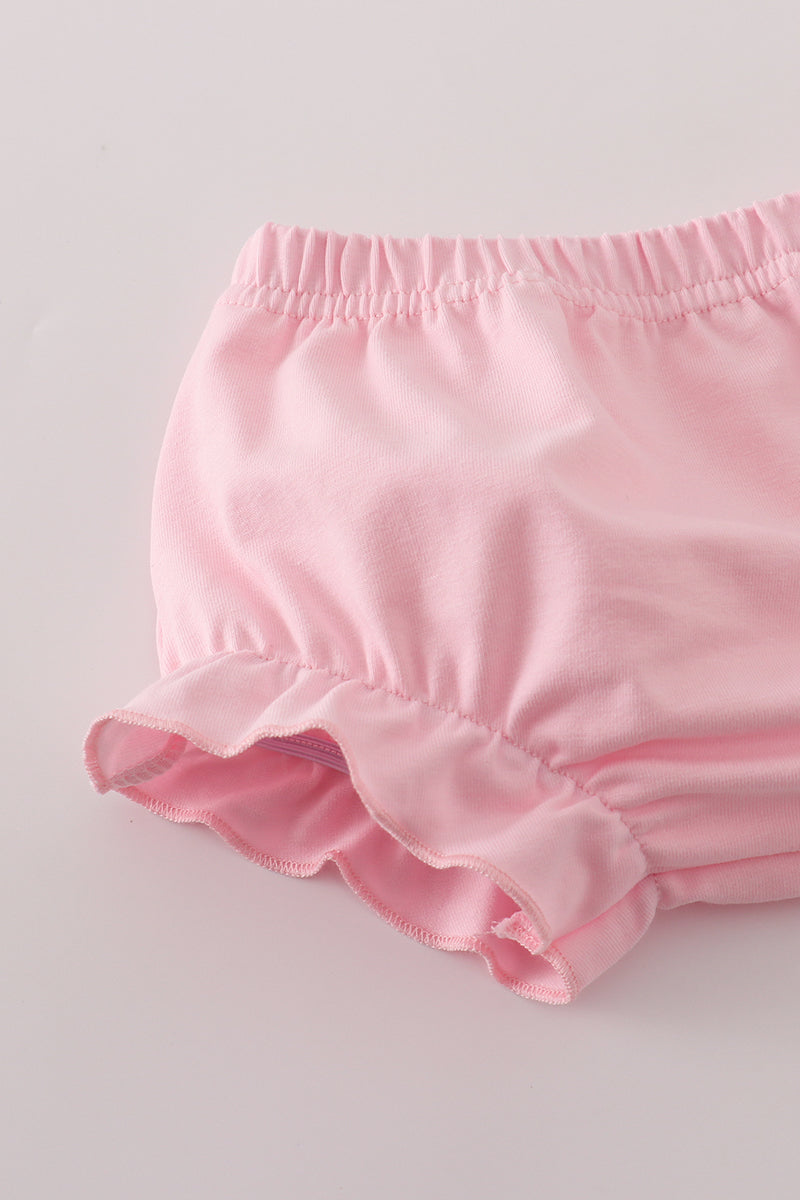 Pink crayon applique bow bloomer set