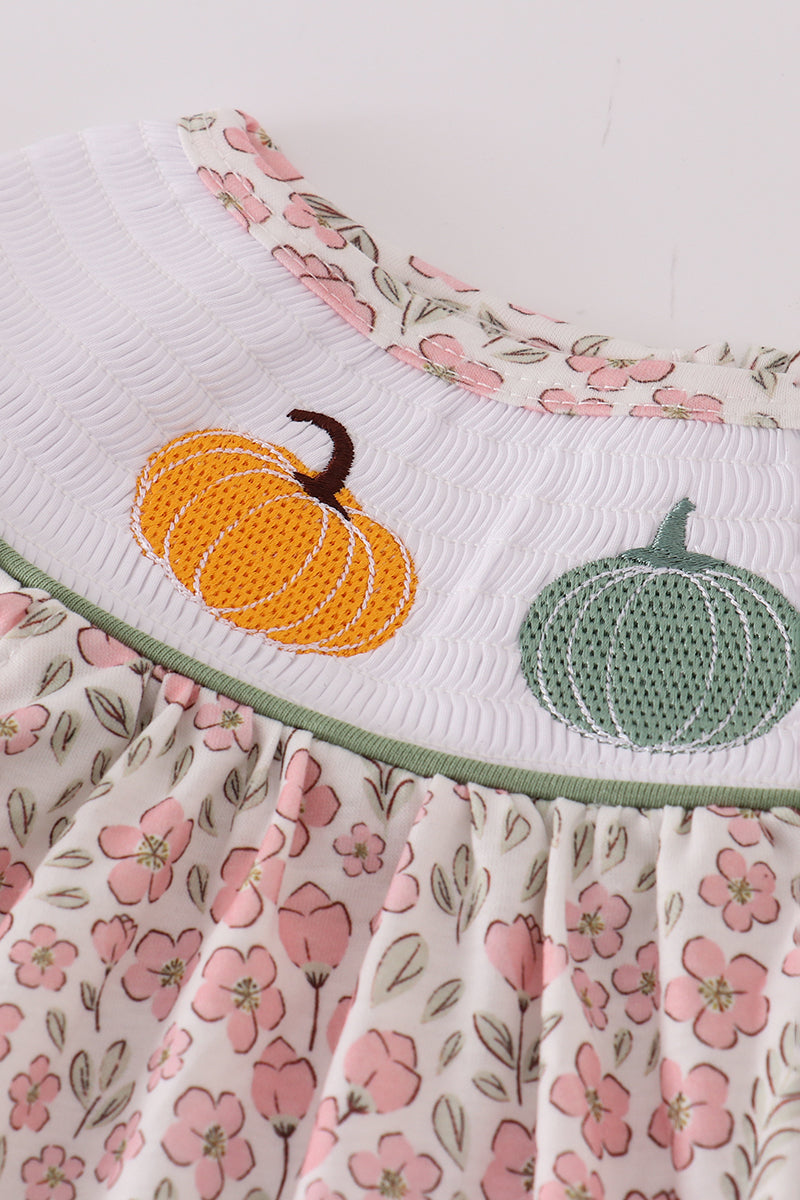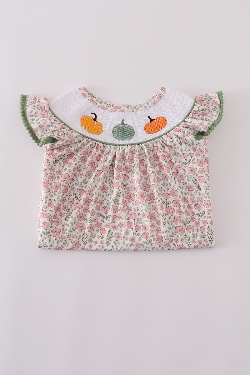 Add a splash of whimsy to your little one’s wardrobe with this pink pumpkin smocked floral ruffle pants set. Featuring a charming smocked top and playful ruffle details, this outfit combines comfort with adorable style. Perfect for twirling, playing, and making every day feel like a fun adventure!