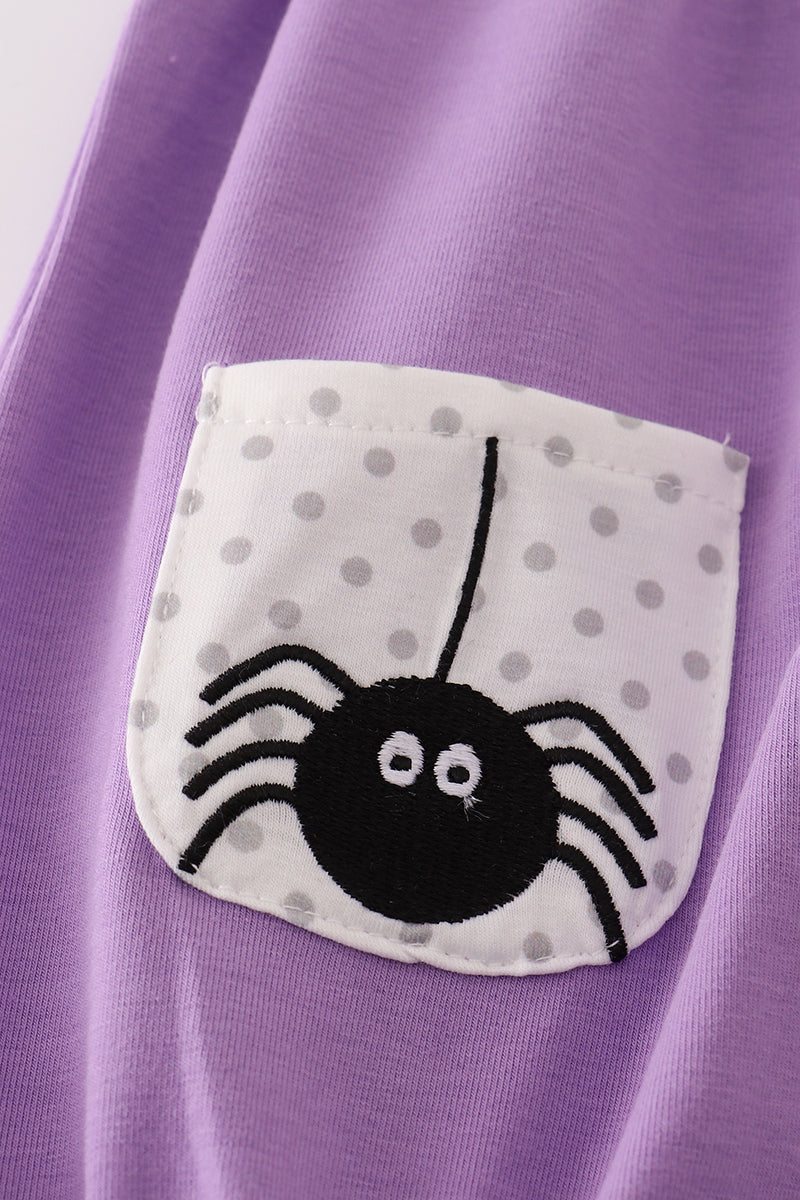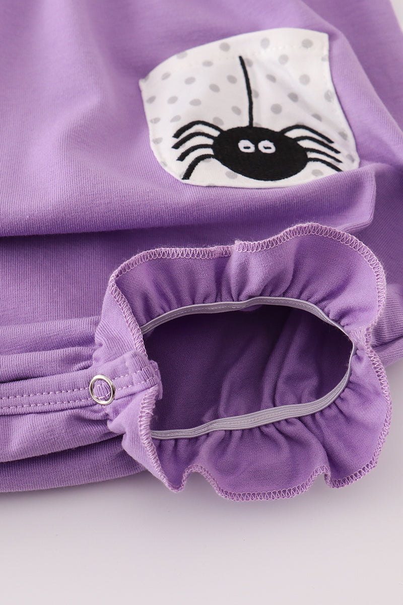 Add a whimsical touch to your wardrobe with this playful purple bubble dress featuring charming spider embroidery and delicate ruffle details. Its unique design brings fun and flair to any occasion, making it perfect for those who love a little spooky style with a twist.