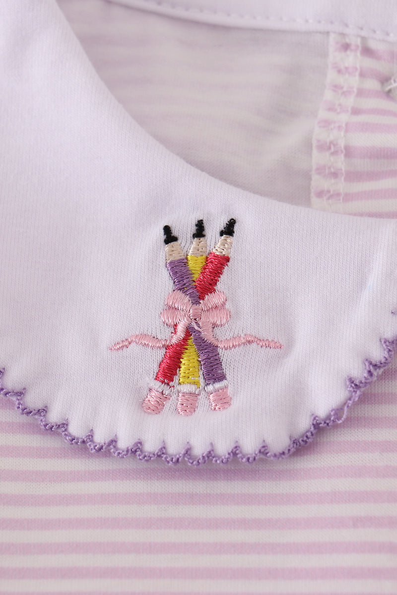 Purple stripe crayon embroidery dress