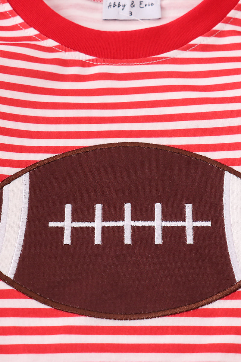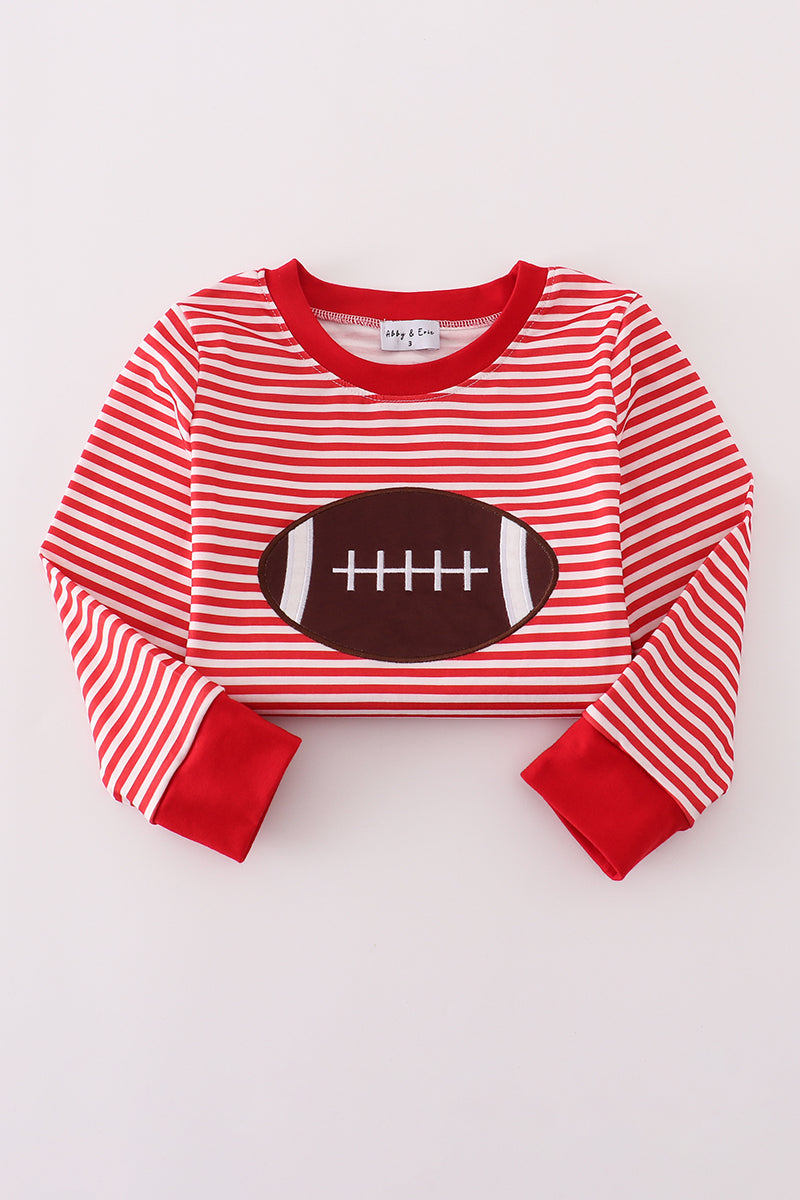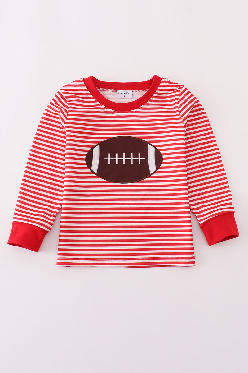 Add a fun and sporty vibe to your wardrobe with this playful red football applique top. Featuring a vibrant red hue and a bold football design, it’s perfect for showing off your game-day spirit or adding a sporty touch to your everyday look. Comfortable and eye-catching, this top makes staying stylish feel like a winning touchdown!
