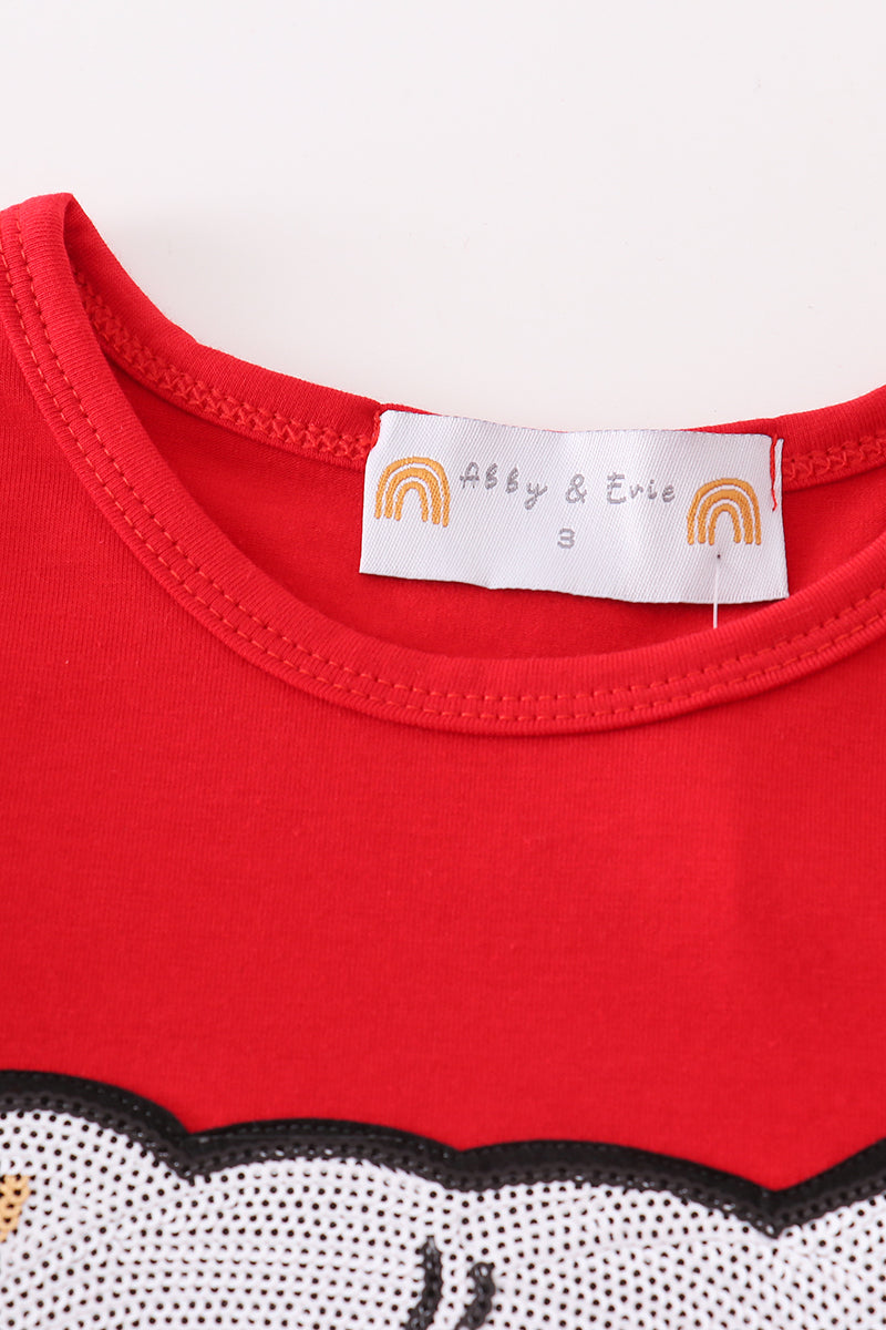 Show off your team pride with this sequin top featuring a red Georgia bulldog design. Perfect for moms and kids to rock together, this top is a fun addition to any game day outfit. Go team!