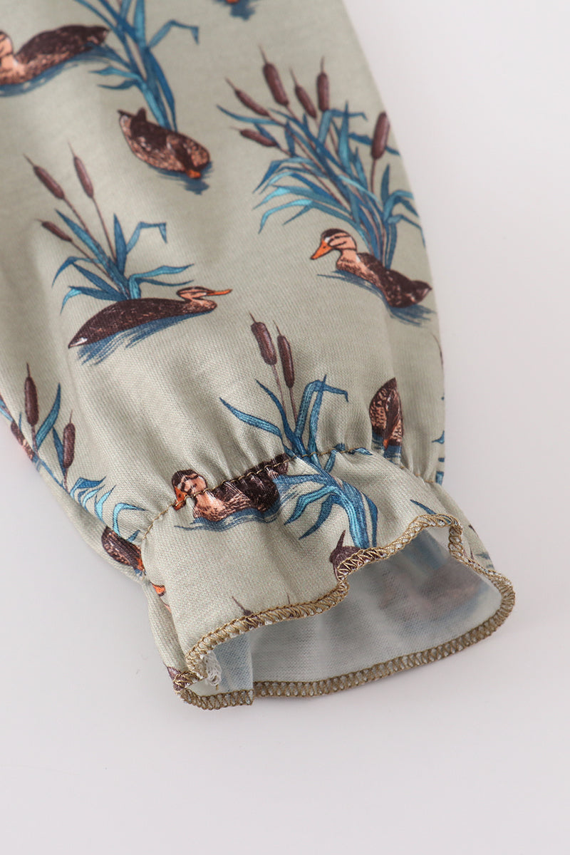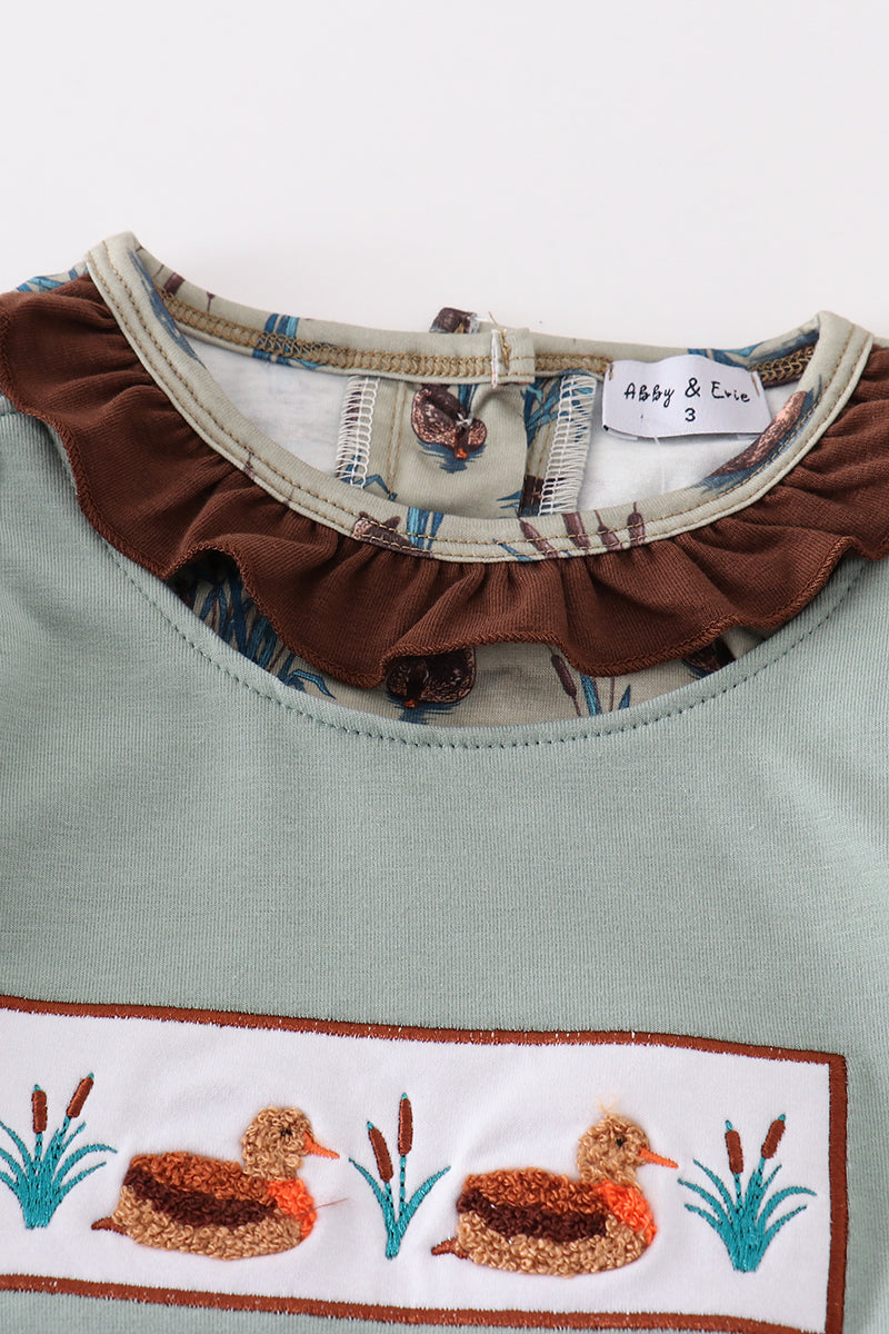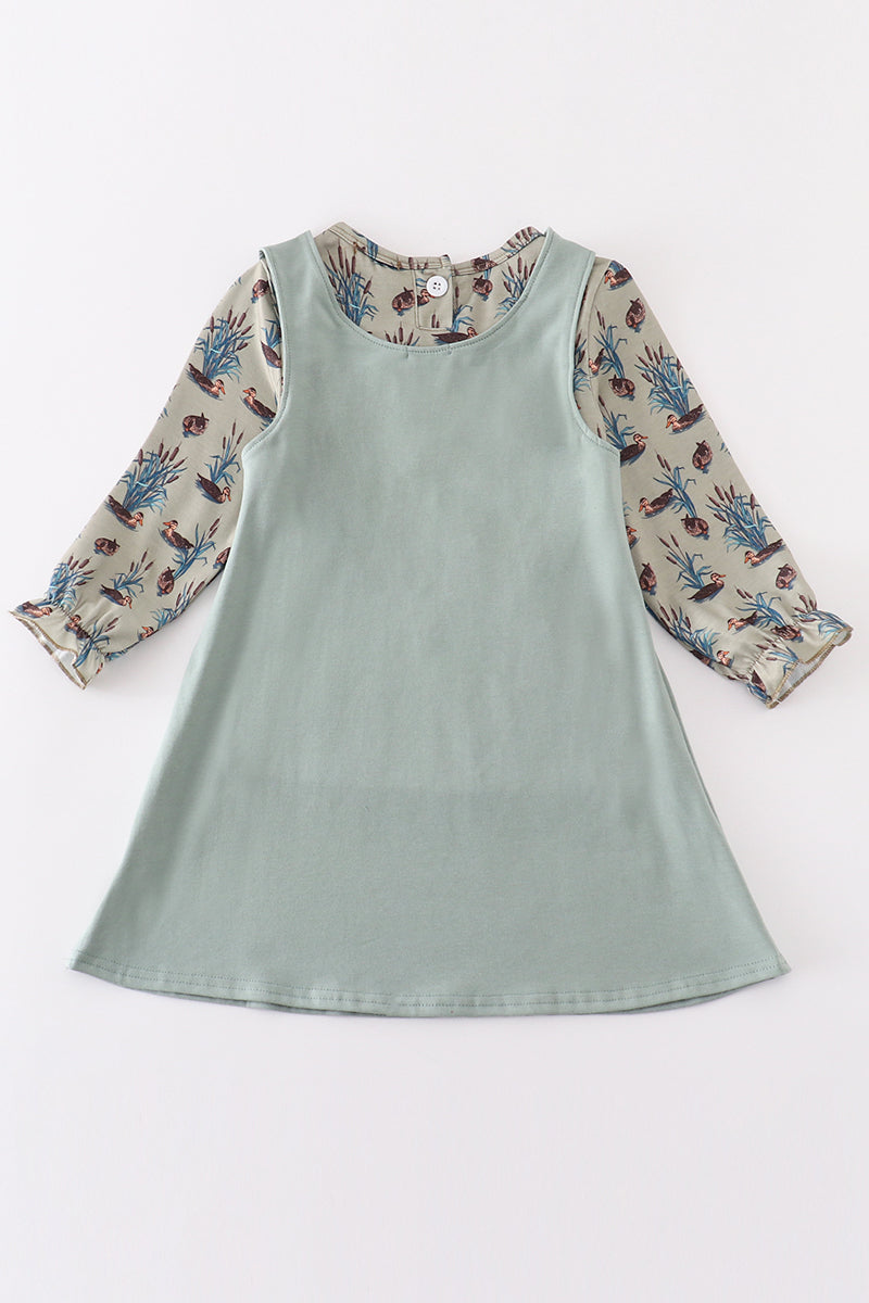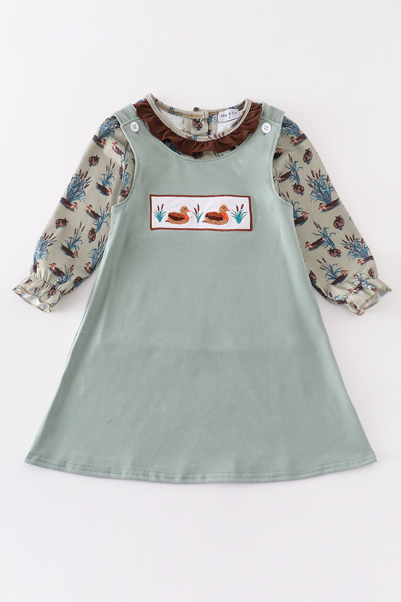 Quack up your little girl's wardrobe with our Sage Duck French Knot dress set! This playful and quirky dress features an adorable sage duck embroidery, adding a touch of whimsy to any outfit. Made with high-quality materials, this dress set will keep your little one comfortable and stylish.